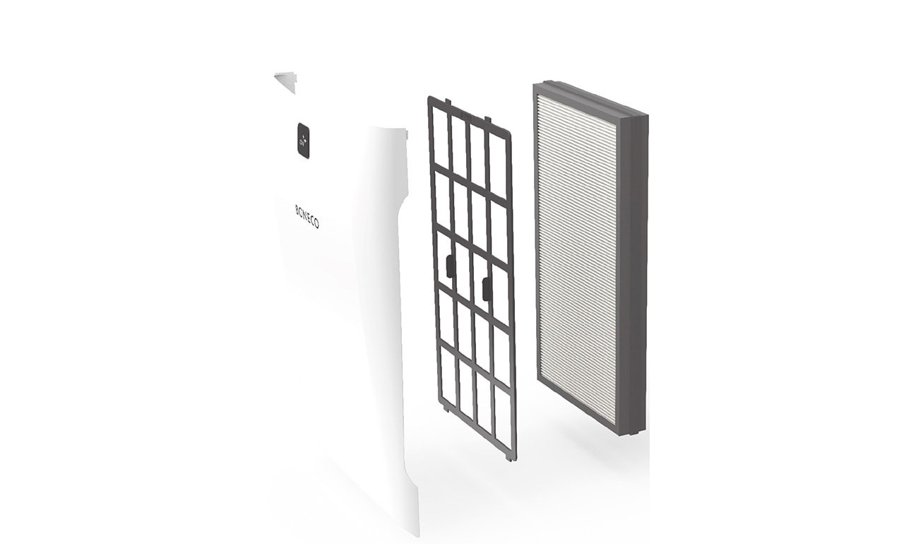 Jest to połączony filtr HEPA i węglowy. Taki zestaw gwarantuje wychwyt pyłów, sierści zwierząt, alergenów, wirusów, roztoczy, bakterii, szkodliwych gazów oraz nieprzyjemnych zapachów. Zyskujemy powietrze czyste blisko w 100%.