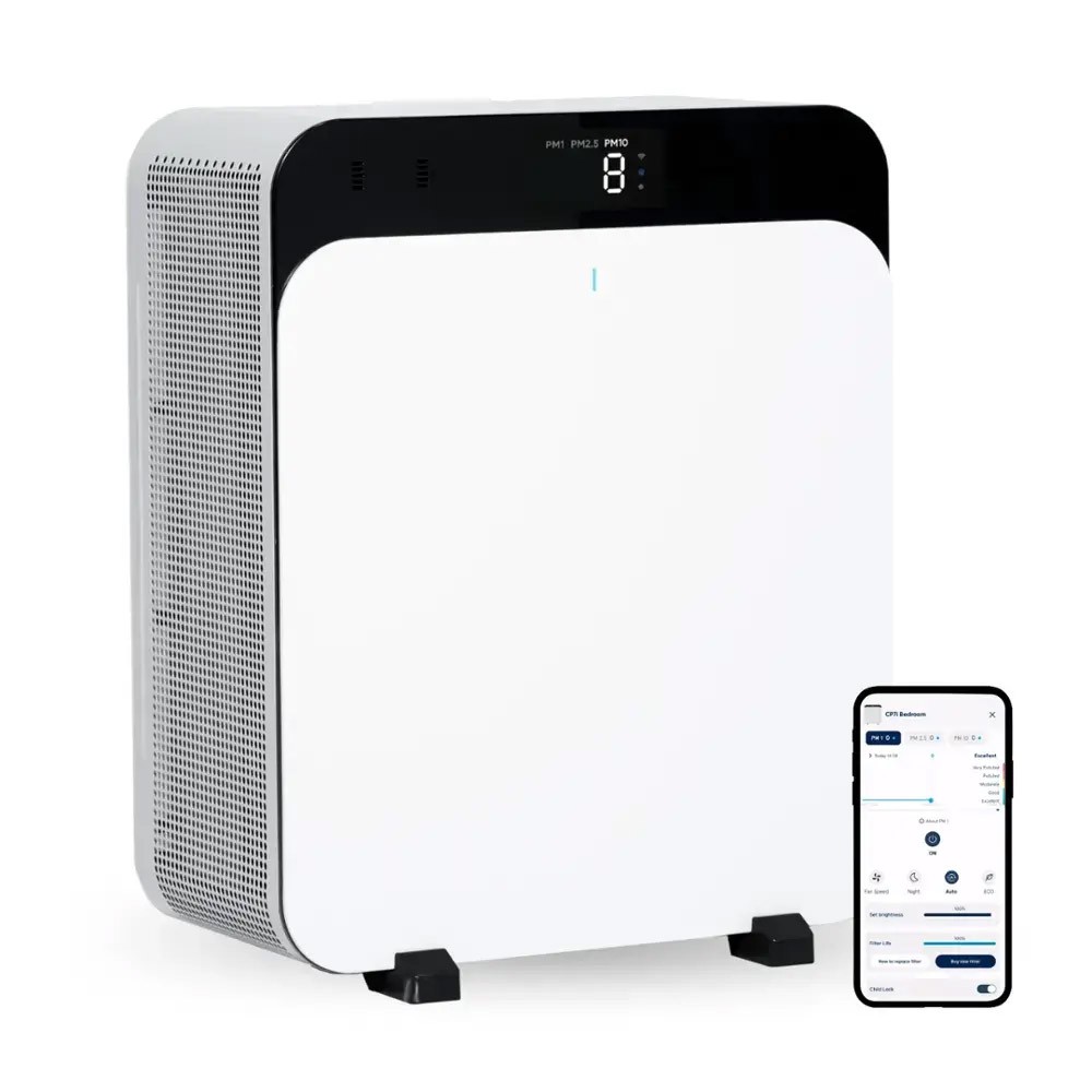 Blueair Classic Pro CP7i współpracuje z aplikacją mobilną Blueair, umożliwiając zdalne sterowanie oczyszczaczem oraz monitorowanie jakości powietrza w czasie rzeczywistym. Dzięki integracji z czujnikiem jakości powietrza użytkownik może na bieżąco śledzić poziom zanieczyszczeń i korzystać ze wskaźnika AQI, który w pięciokolorowej skali informuje o stanie powietrza. Aplikacja pozwala również ustawiać harmonogramy pracy, dostosowywać prędkość wentylatora oraz aktywować tryb automatyczny, który samodzielnie optymalizuje pracę urządzenia w zależności od warunków w pomieszczeniu. Funkcja trybu Eco dodatkowo pozwala na redukcję zużycia energii, zapewniając efektywne oczyszczanie przy minimalnym poborze mocy. Wygodne sterowanie ułatwia także kompatybilność z asystentami głosowymi, dzięki czemu użytkownik może kontrolować urządzenie bez konieczności korzystania z panelu sterowania. Intuicyjny interfejs, przejrzyste wizualizacje i dostęp do szczegółowych informacji o stanie powietrza sprawiają, że aplikacja Blueair to praktyczne narzędzie do zarządzania jakością powietrza w domu i biurze.
